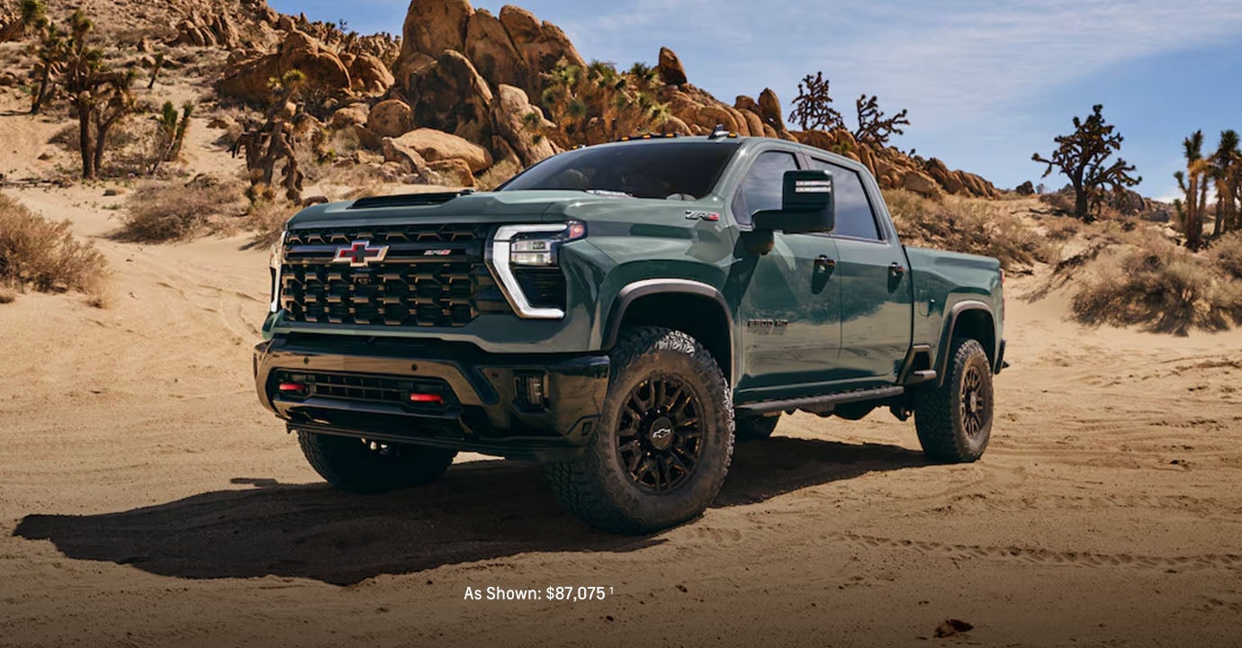 Combining the extreme towing and payload you expect from a heavy-duty pickup with uncompromising off-road capabilities, Silverado HD ZR2 is ready to take on whatever terrain comes your way.